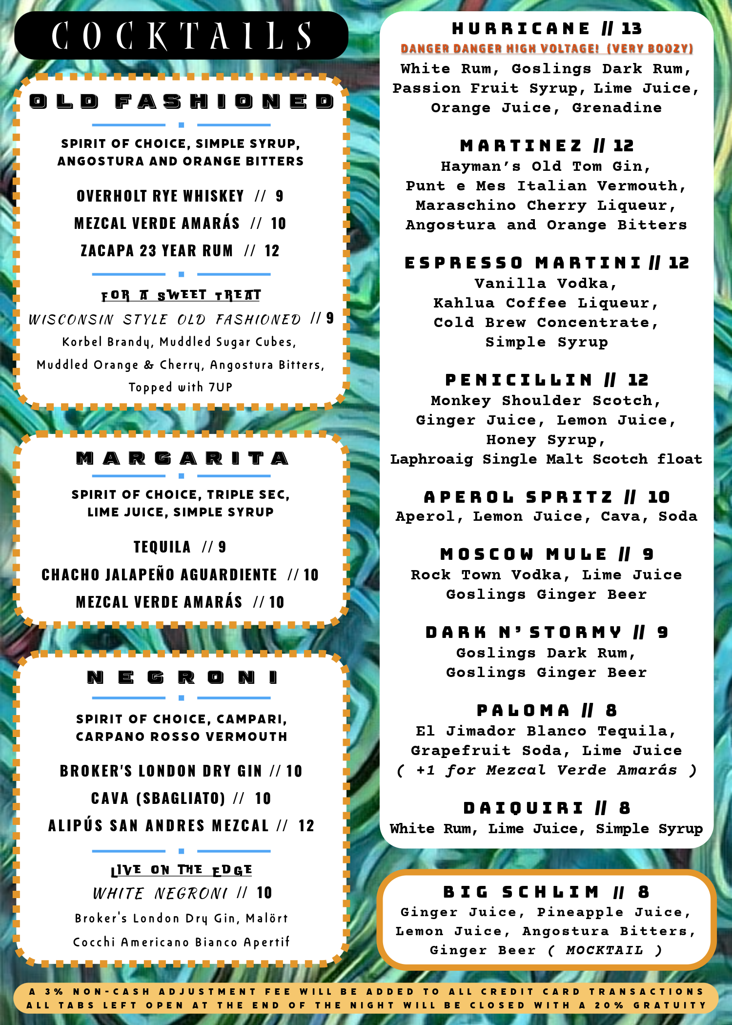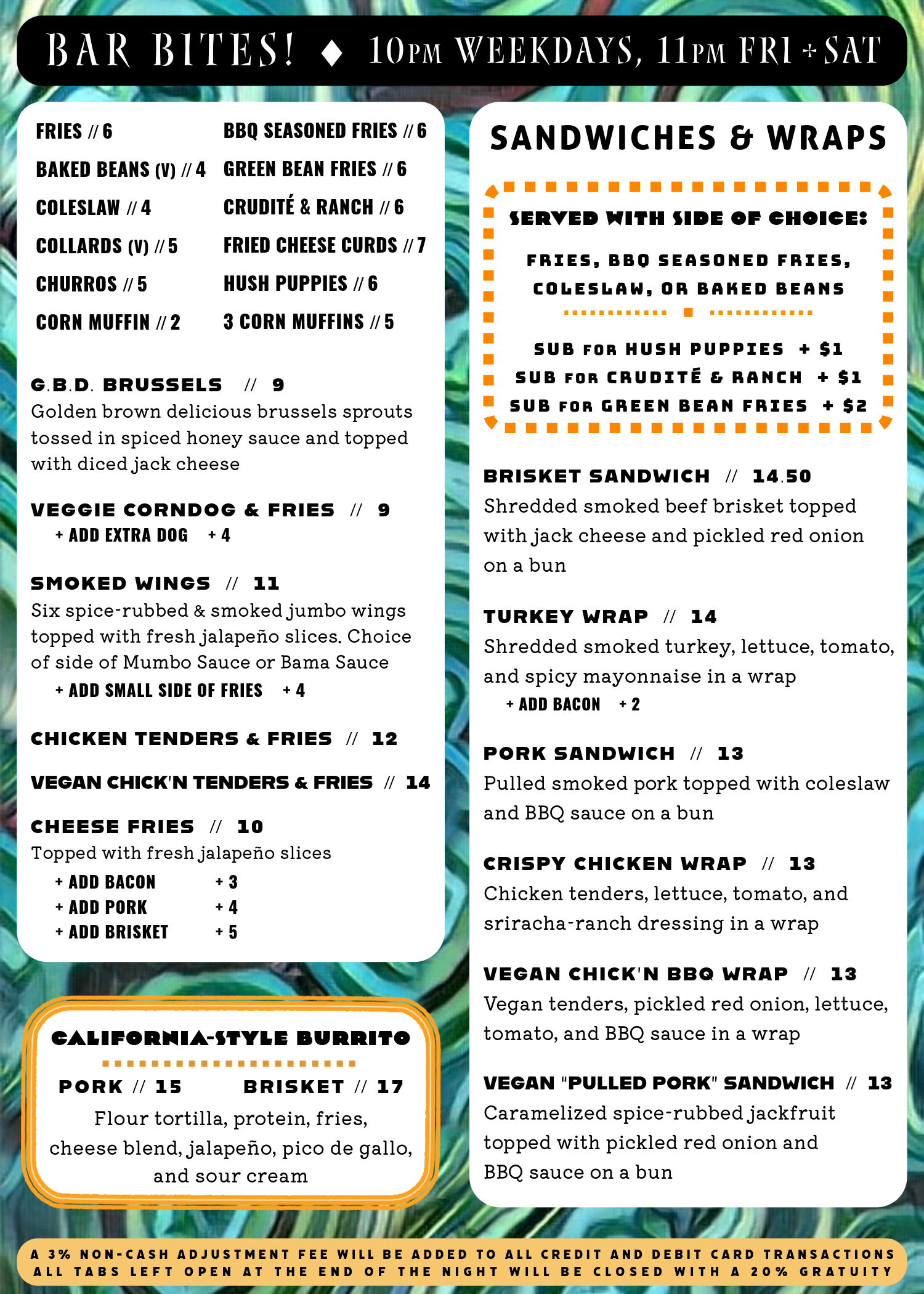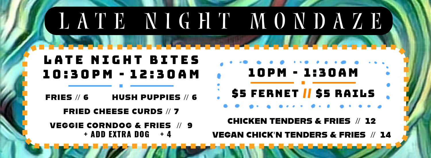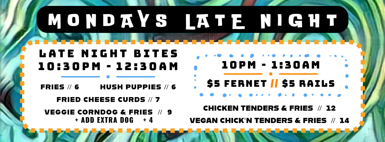GO TO “WEEKLY HOURS AND OPERATIONS” TO SEE DAILY BAR AND KITCHEN HOURS.