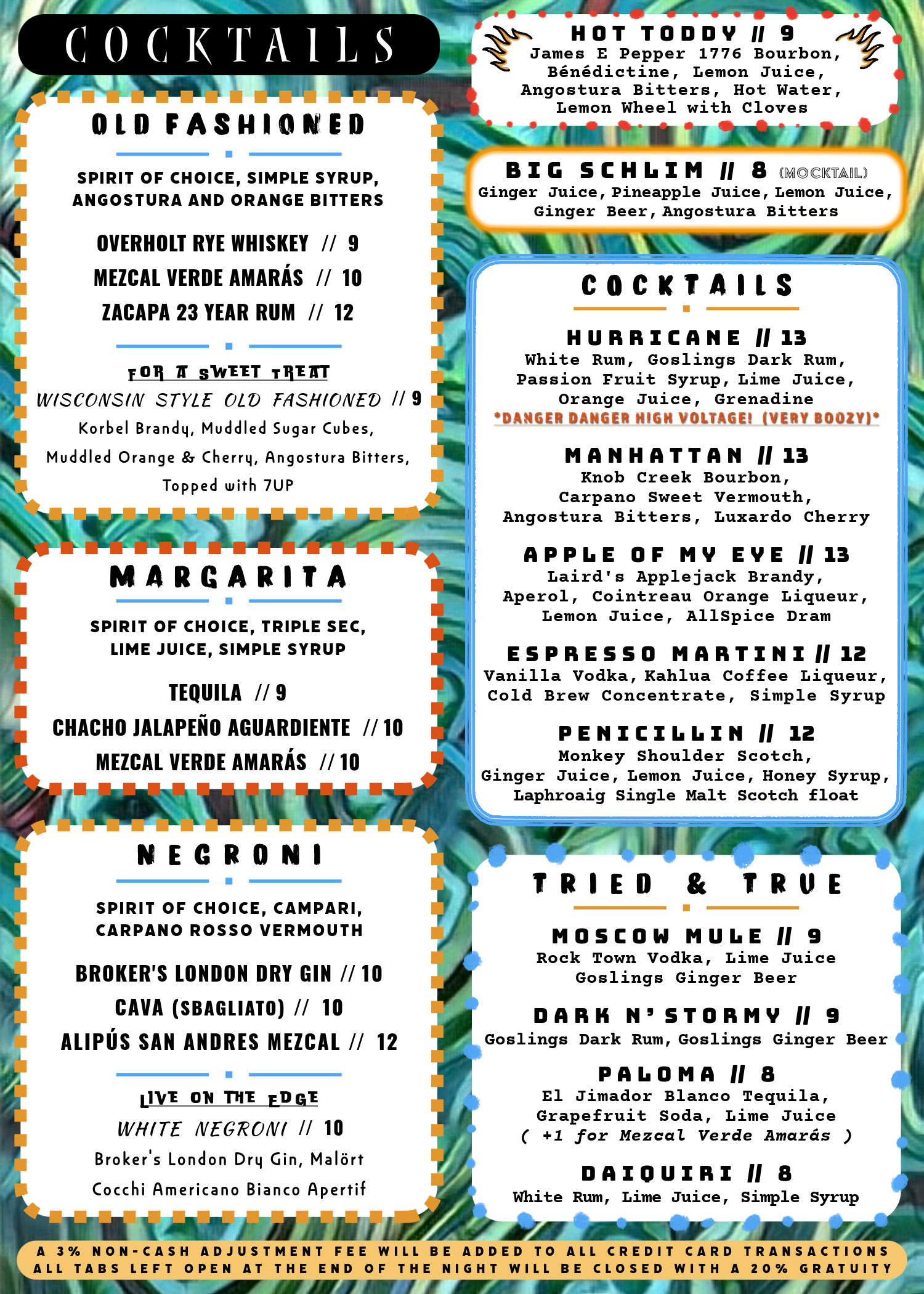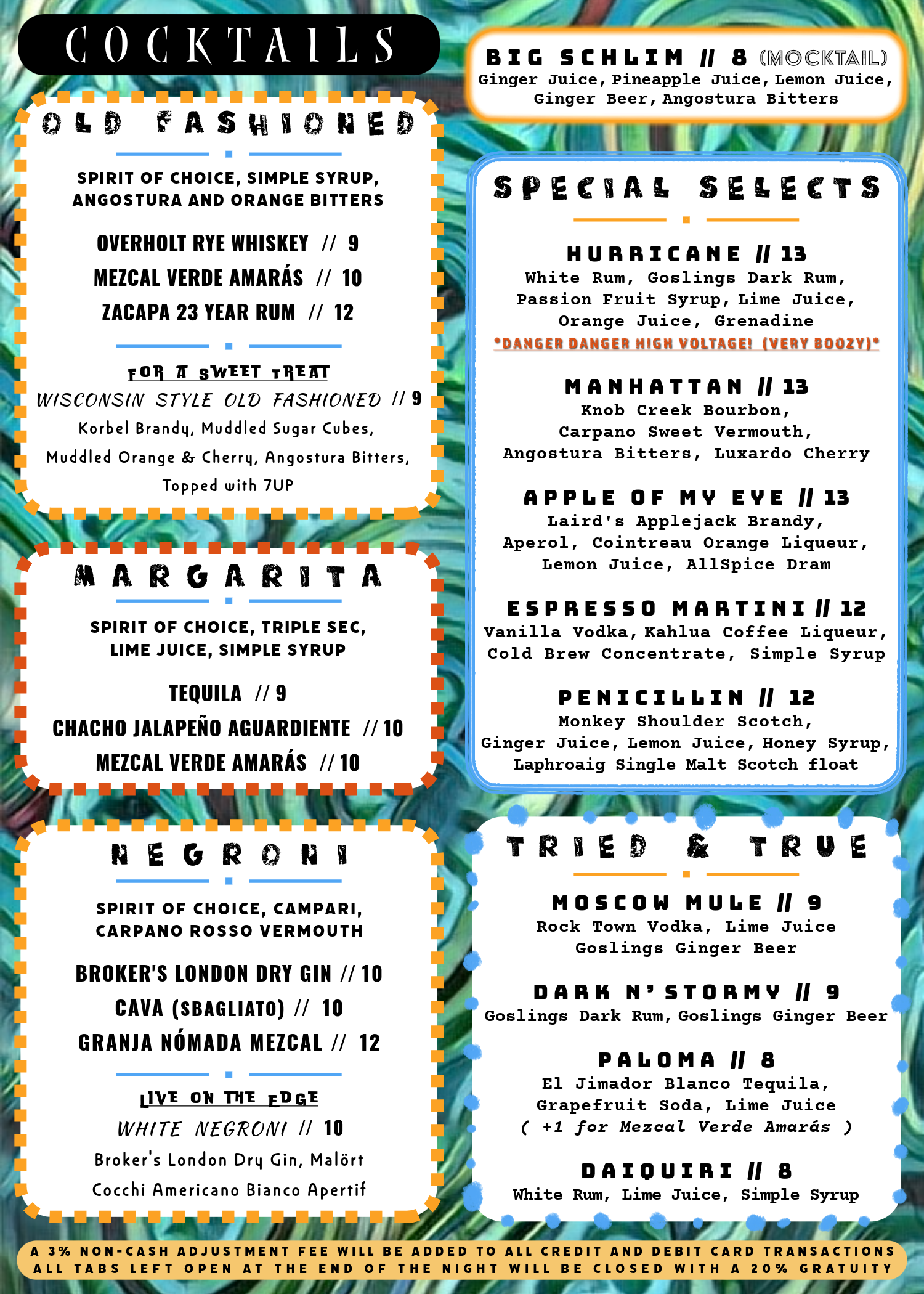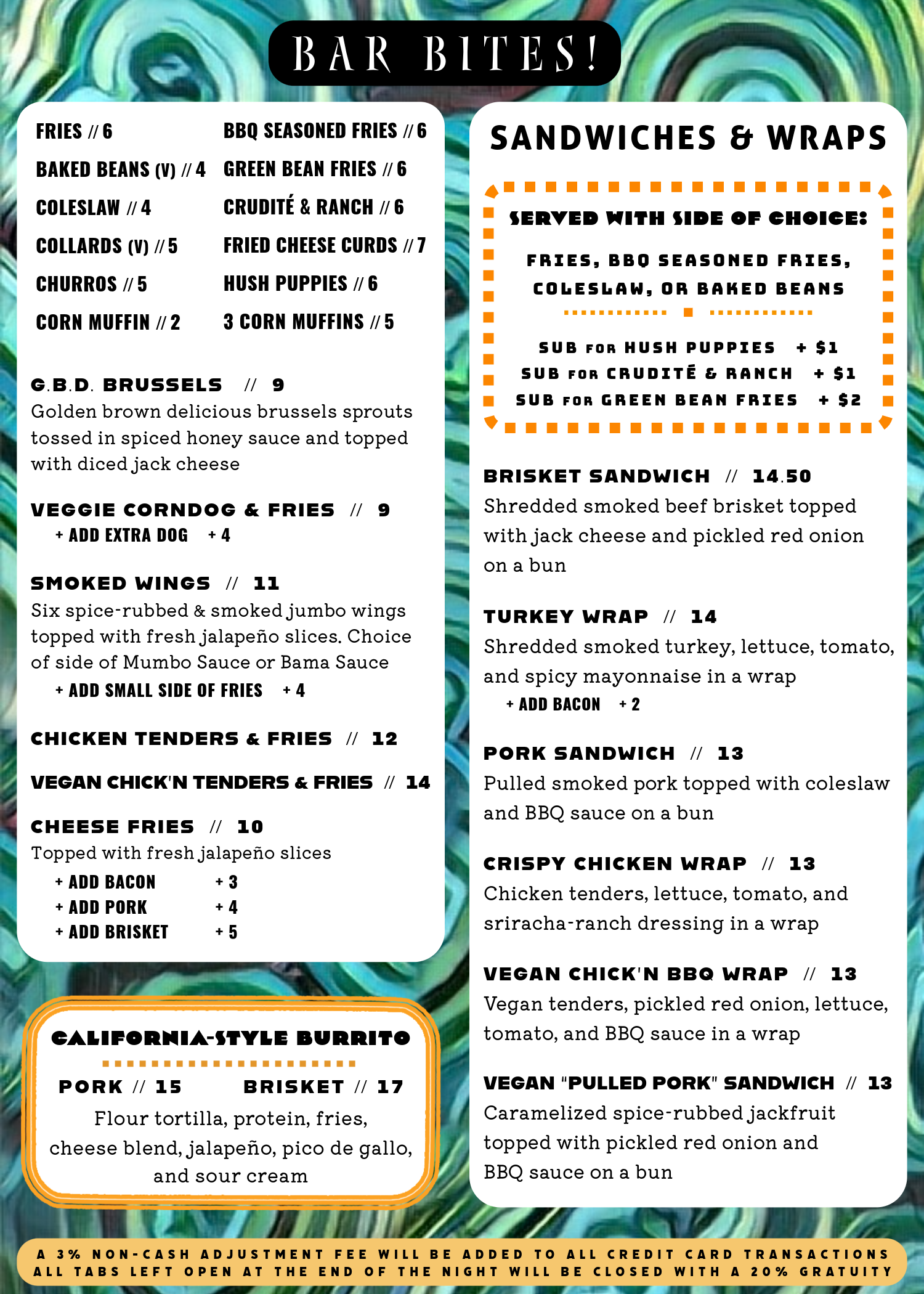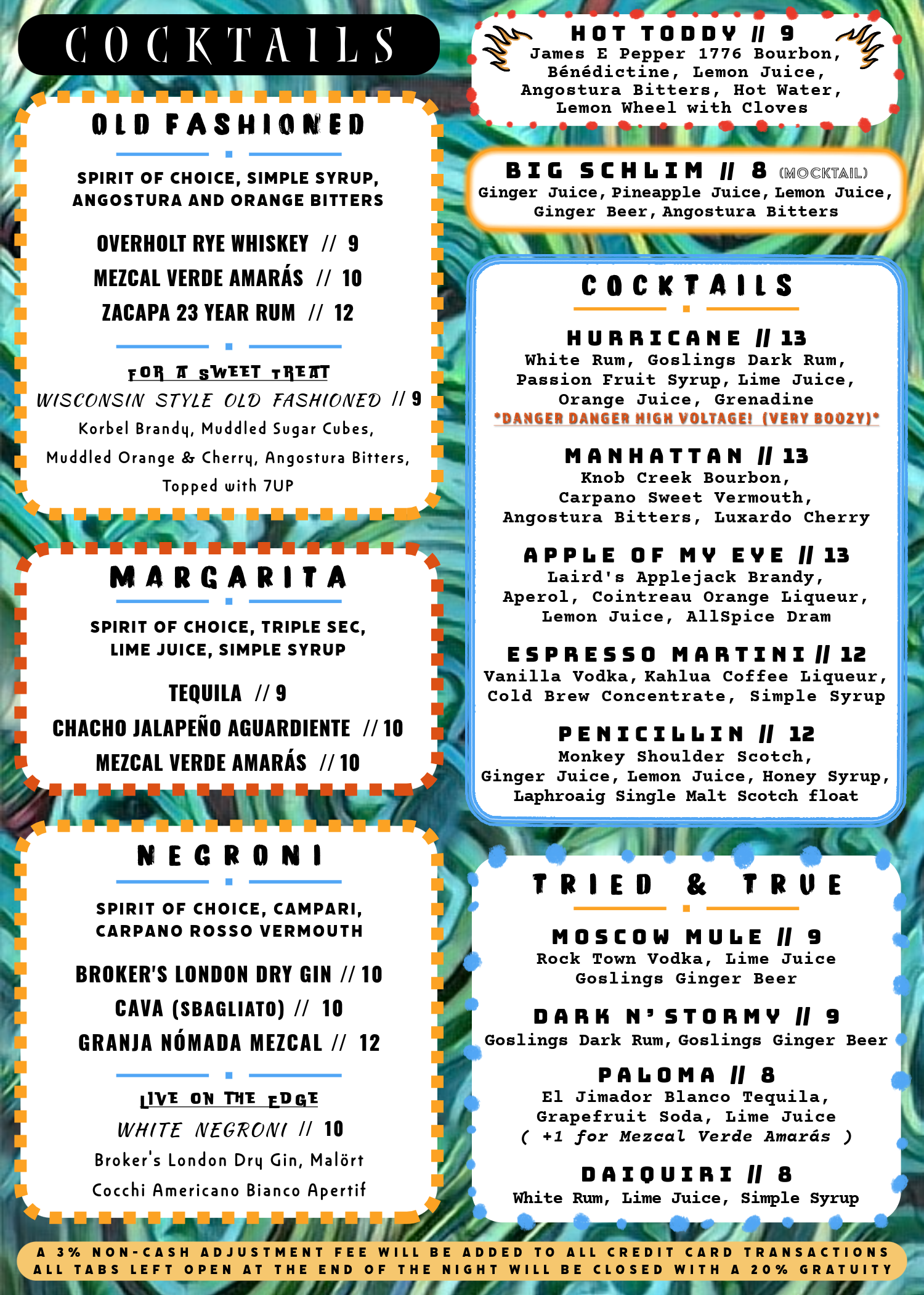 GO TO “WEEKLY HOURS AND OPERATIONS” TO SEE DAILY BAR AND KITCHEN HOURS.